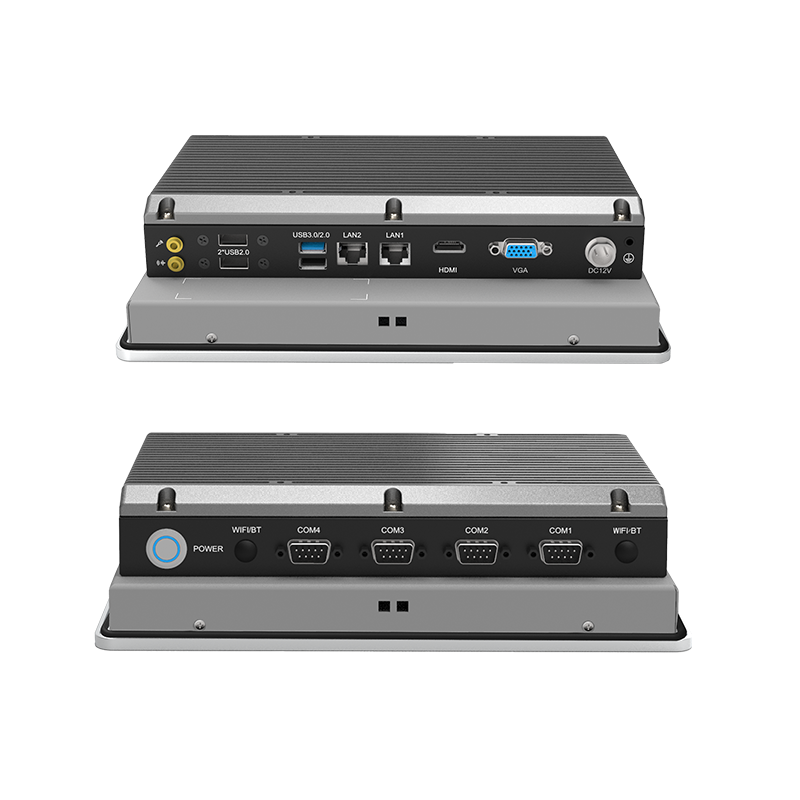 按需選配:英特爾®賽揚® 處理器 J1900 板載處理器,TDP 10W外觀設(shè)計:鋁型材一體成型,科技時尚穩(wěn)定可靠:純工業(yè)無風(fēng)扇設(shè)計,大面積鋁鰭散熱,箱體材質(zhì)可抗接觸式6Kv強電磁干擾;液晶屏接觸處加強型密封膠圈設(shè)計,面板防水防撞擊人機界面友好:純屏10點工規(guī)電容觸控,操作更便利接口豐富:2*Intel LAN,1*HDMI,1*VGA,4*COM,4*USB,支持1*Msata,1*2.5寸盤位,1*MINI PCIE(支持WIFI或4G功能)