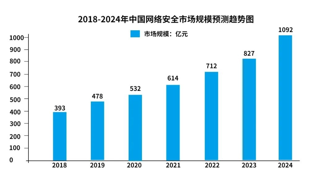當前,網絡安全戰略已成為各國競爭與發展戰略的重要一環,我國網絡安全政策環境也在持續優化,加上企業和個人數字化需求不斷攀升,我國網絡安全市場持續擴大。根據中國網絡安全產業聯盟數據,2022年我國網絡安全市場規模約712億元,預計未來增速仍將保持在15%以上,到2024年市場規模將達到1092億元。
